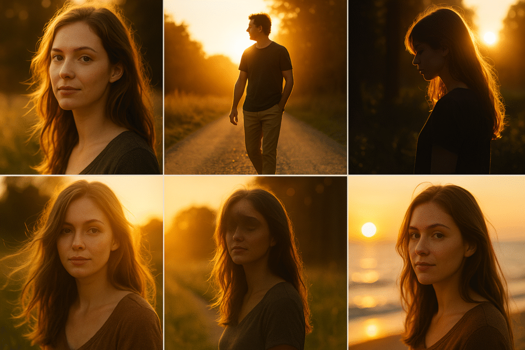 Whether you’re generating an AI portrait, enhancing a real upload, or creating a poster-level image, golden hour turns an ordinary scene into emotional poetry made of sunlight. These prompts recreate that effect with DSLR realism, micro-accurate light falloff, and natural skin texture. Each prompt works beautifully with both user-uploaded photos and AI-generated faces, producing world-class outdoor portraits perfect for Instagram, YouTube, banners, and editorial-style imagery.