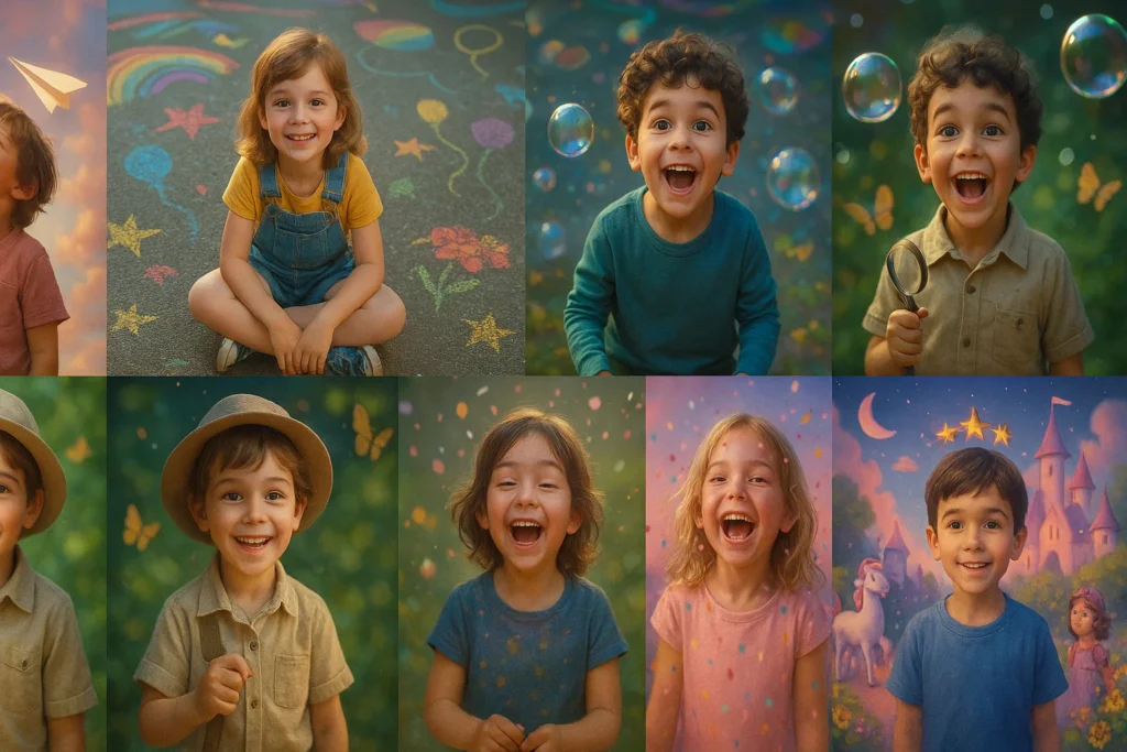Children’s Day is more than a celebration — it’s a tribute to imagination, innocence, curiosity, and the magical world children create around them. These 20 prompts are designed with cinematic accuracy, pastel emotional energy, and storytelling softness that defines the beauty of childhood. Every prompt below is crafted to work with any child’s real photo or AI-generated characters, producing rare, heart-melting visuals with world-class quality.