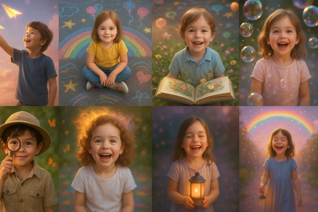 Children’s Day is more than a celebration — it’s a tribute to imagination, innocence, curiosity, and the magical world children create around them. These 20 prompts are designed with cinematic accuracy, pastel emotional energy, and storytelling softness that defines the beauty of childhood. Every prompt below is crafted to work with any child’s real photo or AI-generated characters, producing rare, heart-melting visuals with world-class quality.